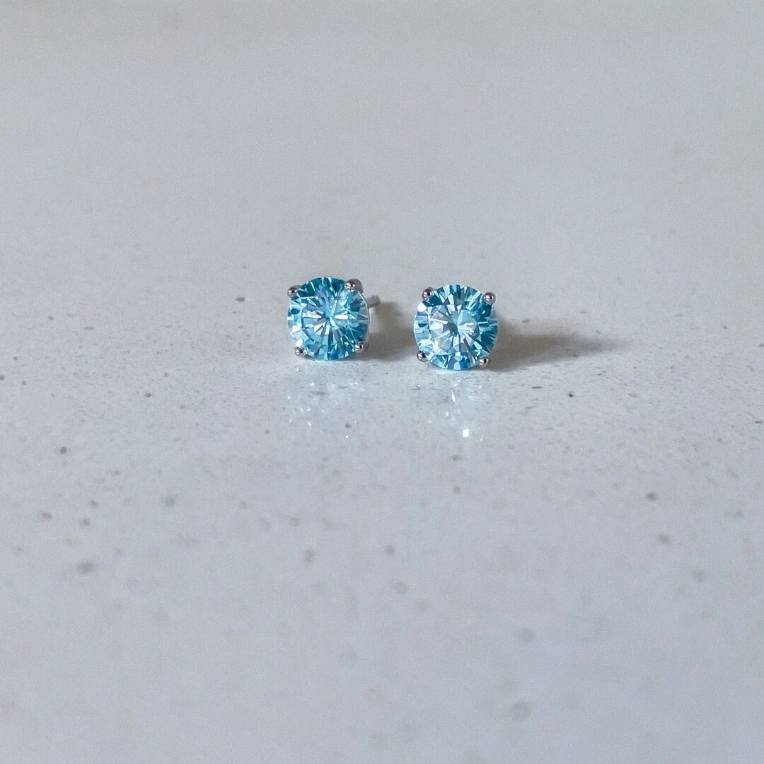 Elegância azul! Brinco solitário em zircônia água marinha medindo 6mm, com brilho intenso e elegante. Feito em prata 925 com banho de ródio branco, oferece durabilidade e um acabamento sofisticado.
