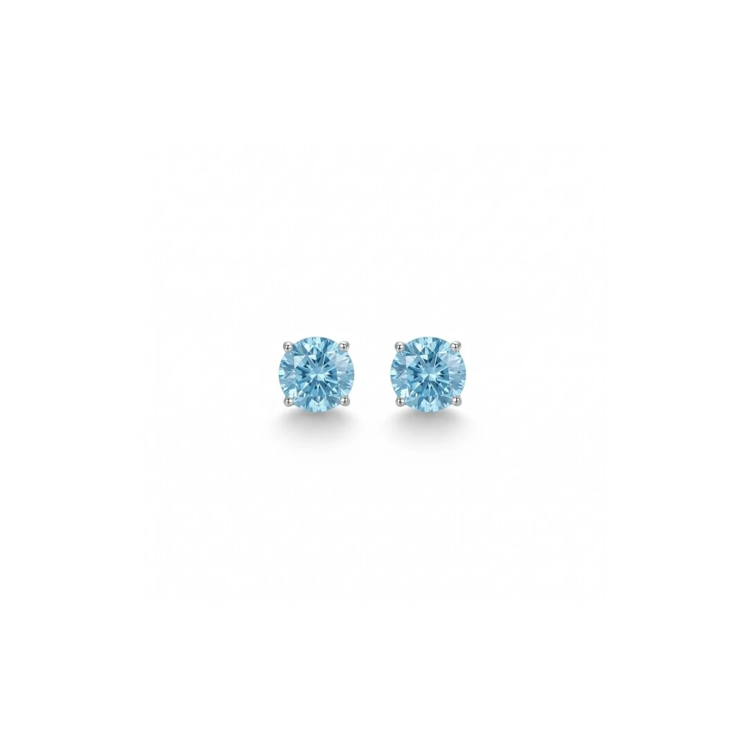 Brinco Solitário 4mm Zircônia Água Marinha - Prata 925 com Banho de Ródio Branco