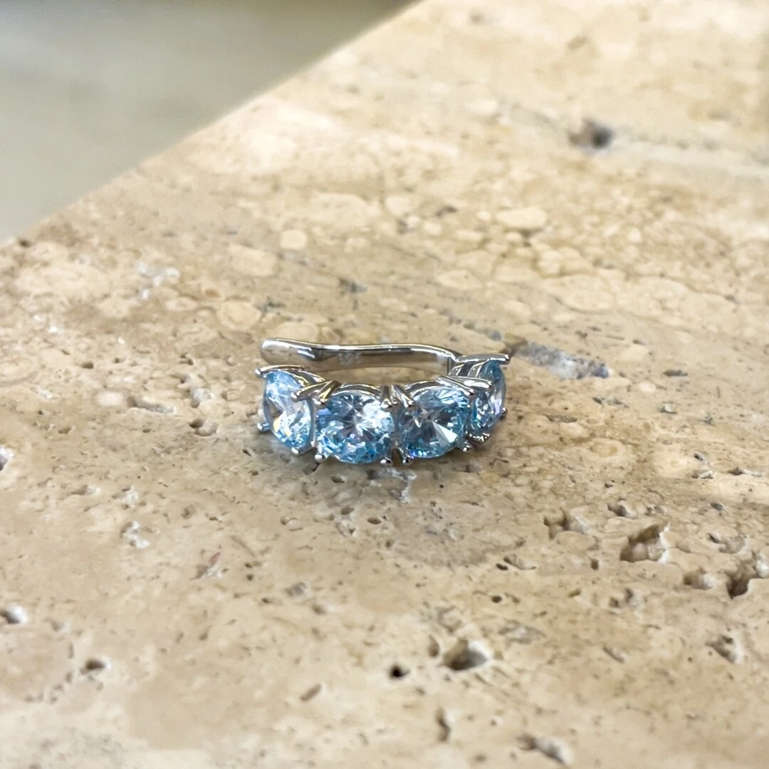 Falso Piercing Zircônia Água Marinha - Prata 925 com Banho de Ródio Branco