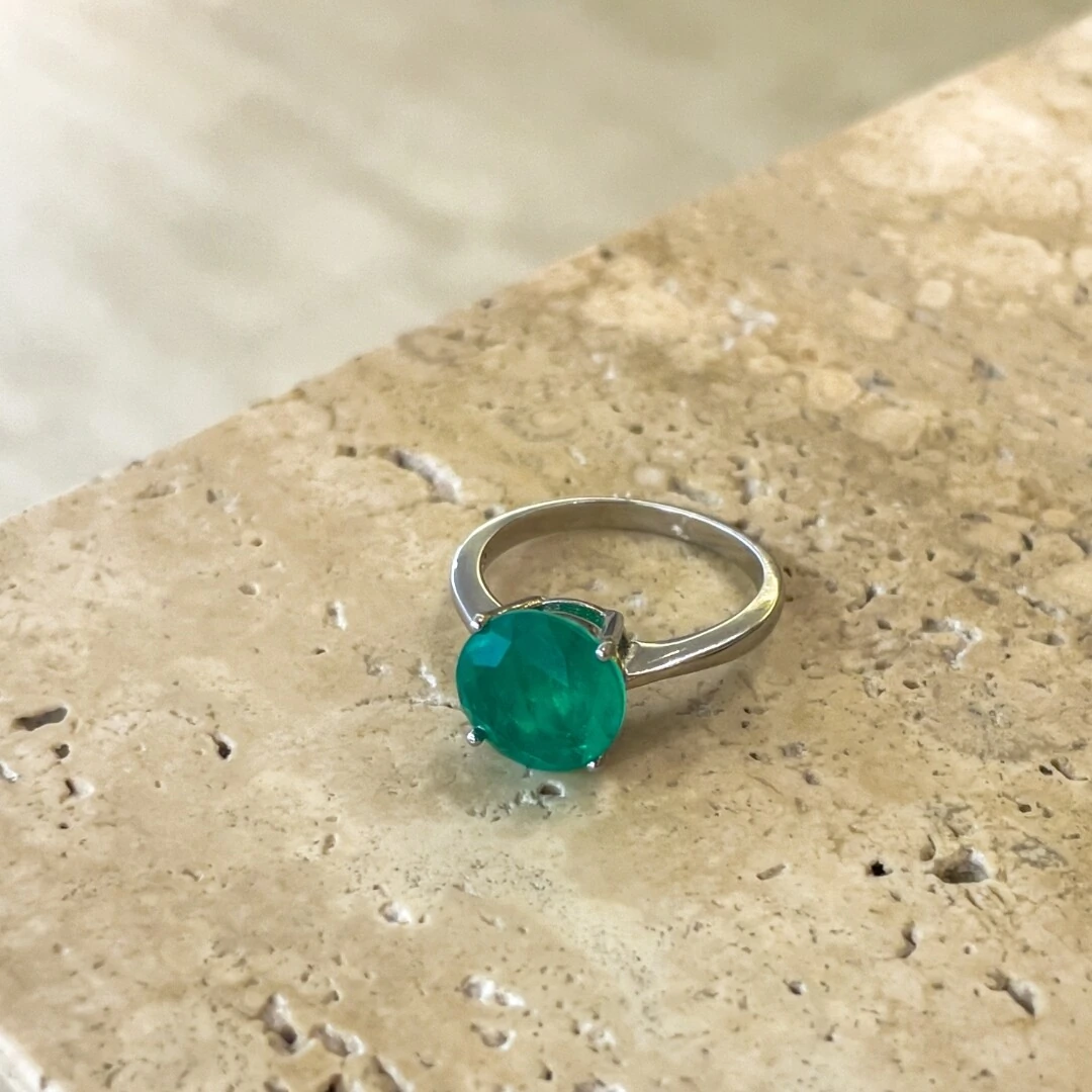 Elegância vibrante! Anel solitário em zircônia esmeralda fusion medindo 10mm, com brilho intenso e elegante. Feito em prata 925 com banho de ródio branco, oferece durabilidade e um acabamento sofisticado.