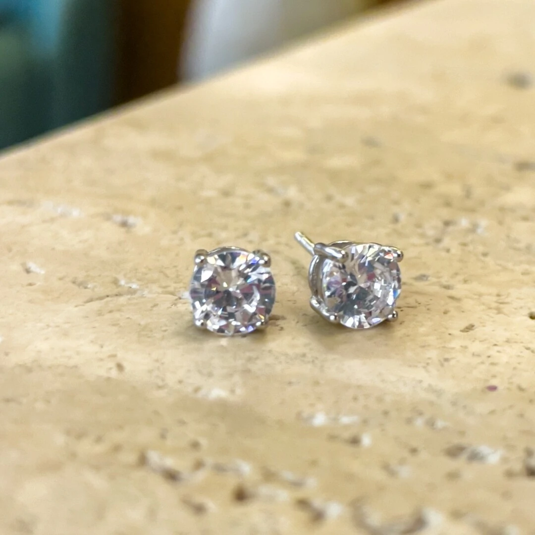 Brinco Ponto de Luz 6mm Zircônia - Prata 925 com Banho de Ródio Branco
