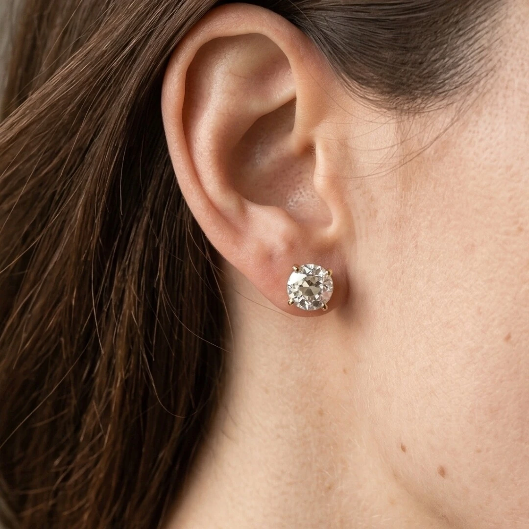 O Brinco Solitário Moissanite Rose Cut 10mm em Prata com Banho de Ouro 18k é a expressão máxima da coleção Rose Cut — a beleza atemporal desta lapidação clássica encontra o acabamento dourado para criar uma peça de presença inconfundível.