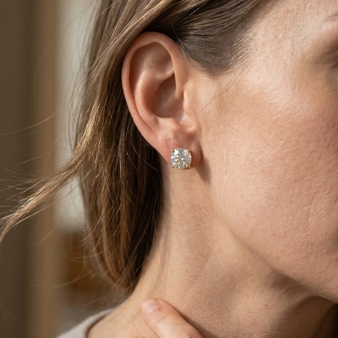 Brinco Solitário Moissanite Rose Cut 8mm | Ouro 18k | GRA