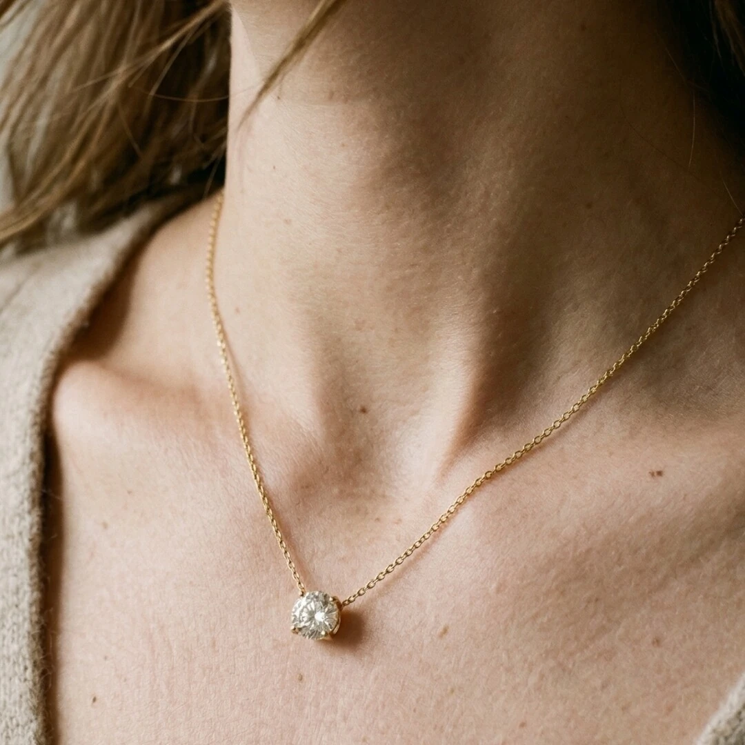 A lapidação Rose Cut, uma das mais refinadas da joalheria clássica, projeta a luz de forma suave e profunda. Com 4ct de Moissanite certificada GRA e corrente regulável de 40 a 50cm, esta peça se adapta ao seu estilo e brilha em qualquer decote.