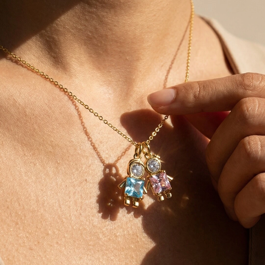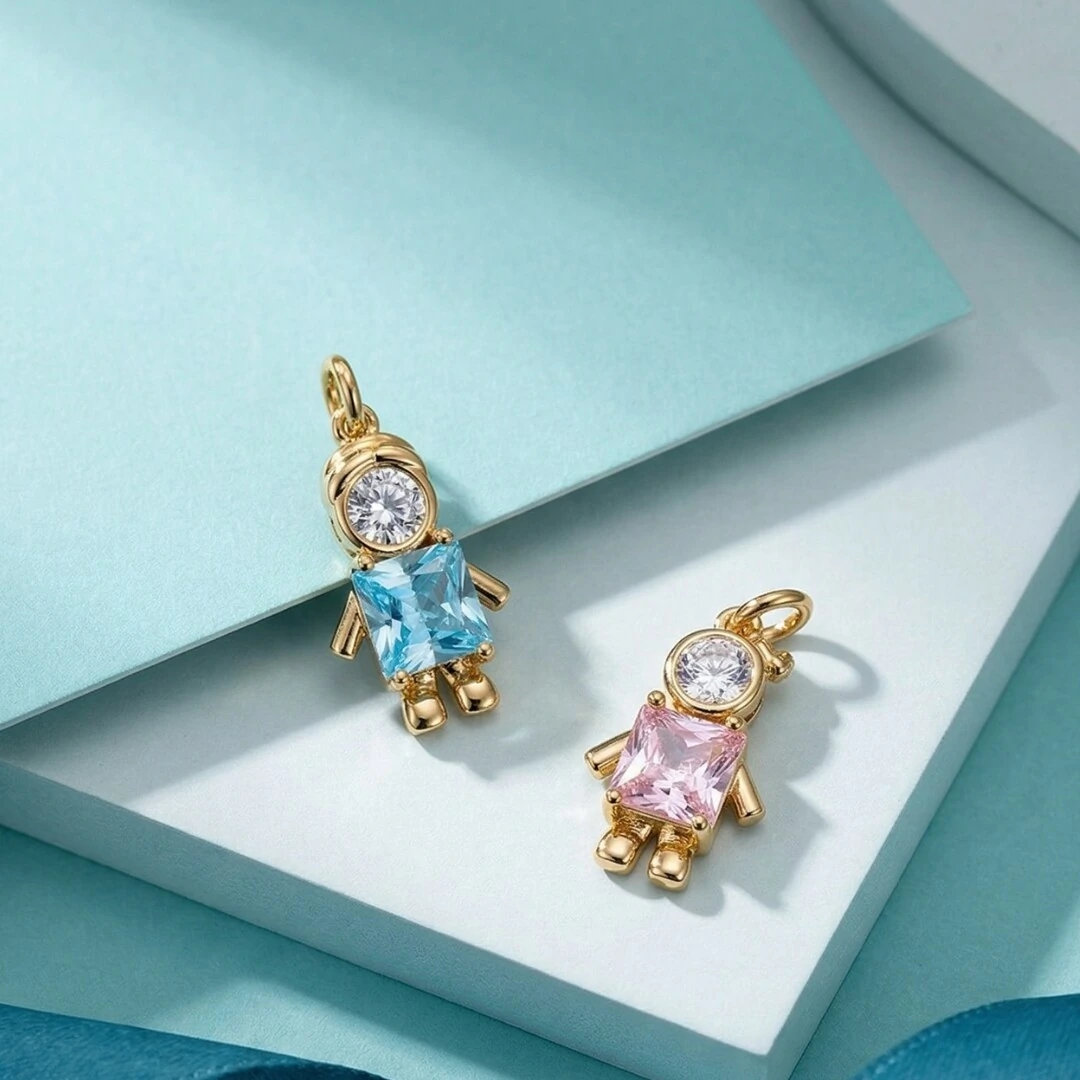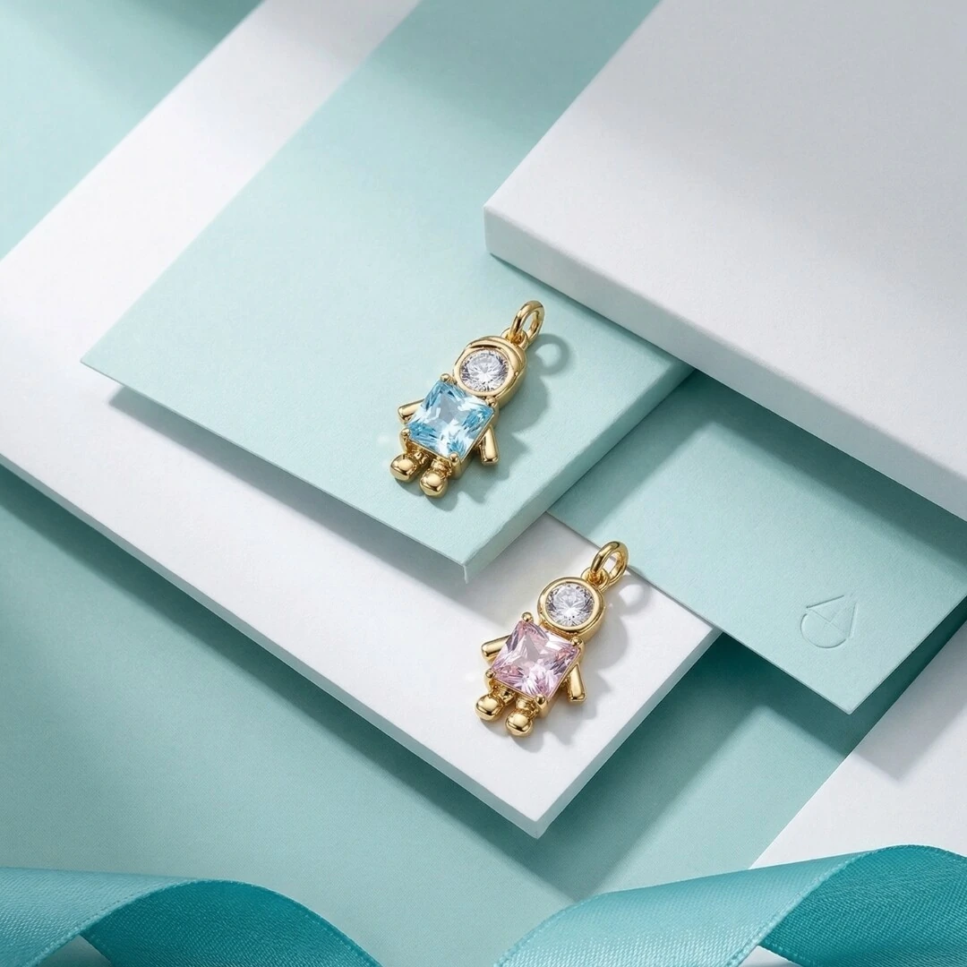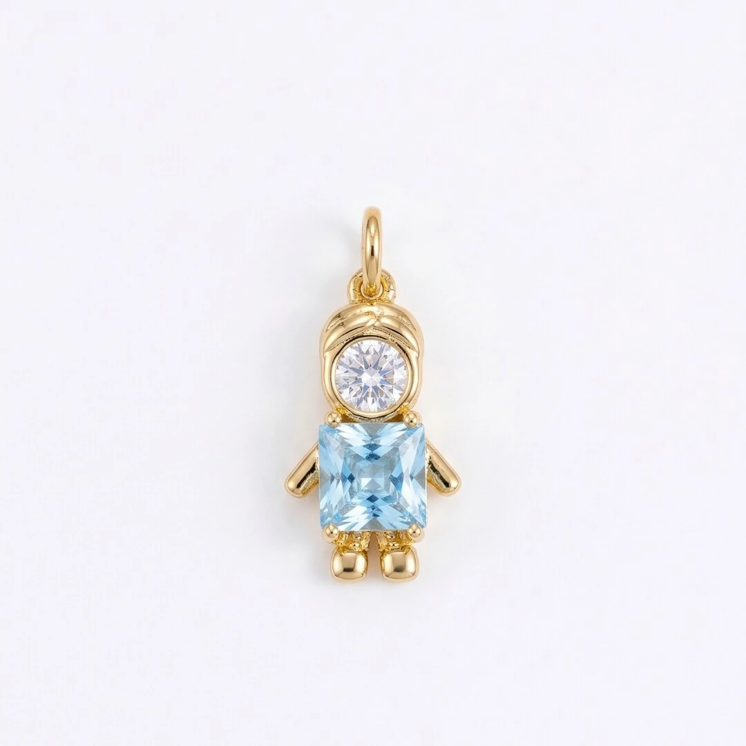 O Pingente Menino Zircônia Azul em Banho de Ouro 18k é uma peça cheia de afeto — o corpo em zircônia quadrada azul e a cabeça em zircônia redonda branca criam uma figura delicada e encantadora, perfeita para presentear filhos, afilhados, padrinhos ou para guardar um momento especial para sempre.