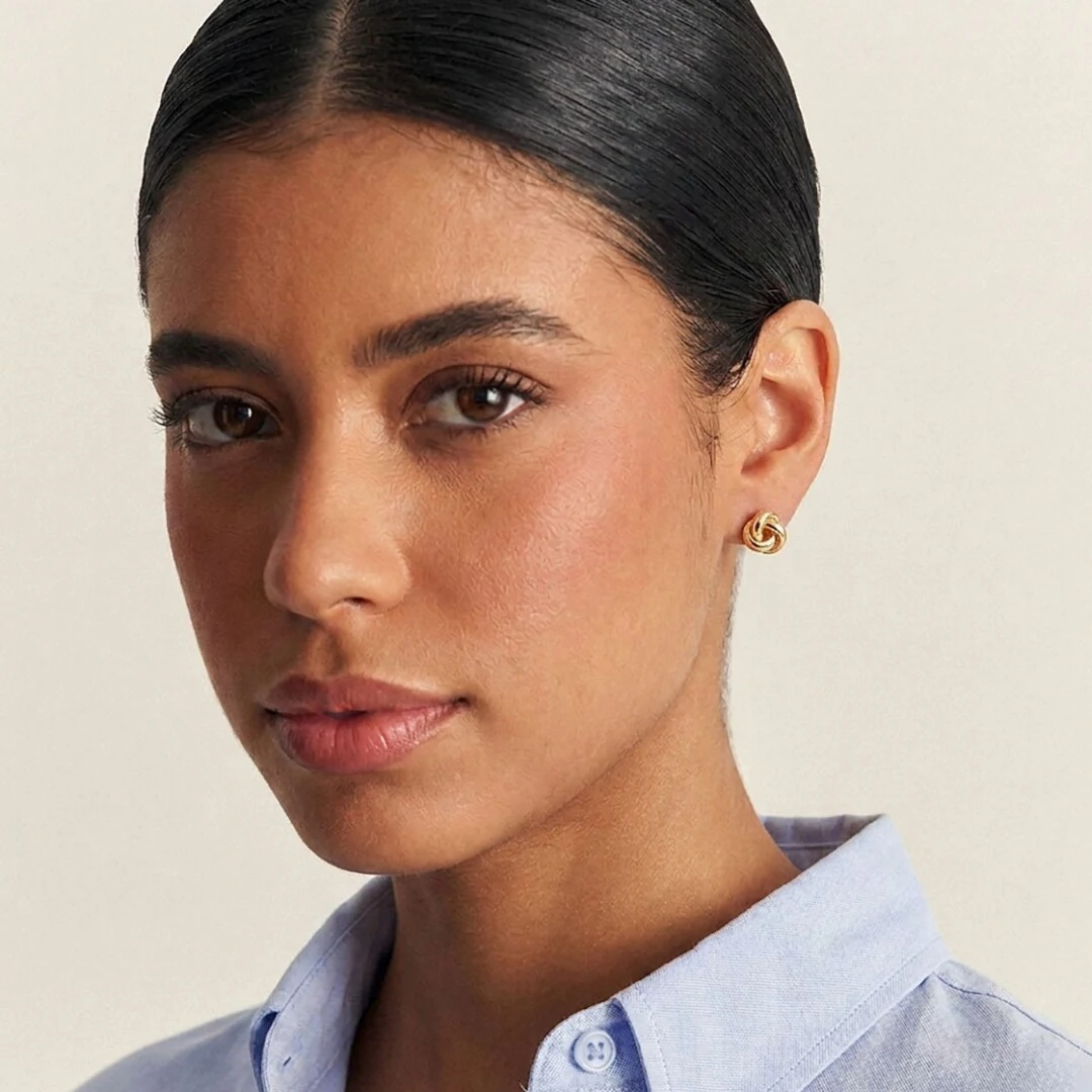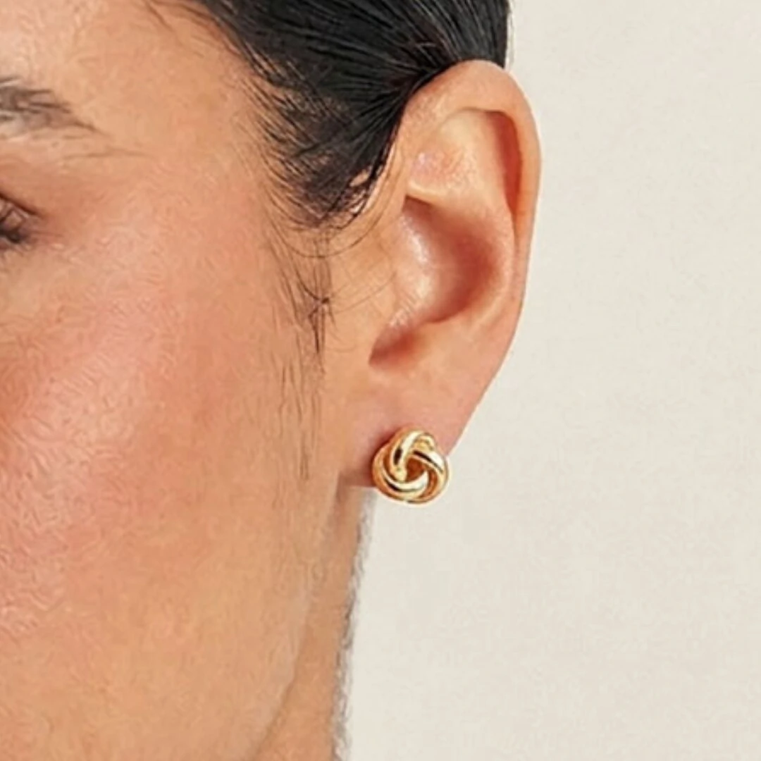 O Brinco Nó Trançado Três Voltas Liso em Banho de Ouro 18k é uma peça de design atemporal — três fios dourados entrelaçados em movimento circular criam um nó elegante e sofisticado que combina com qualquer look, em qualquer ocasião.