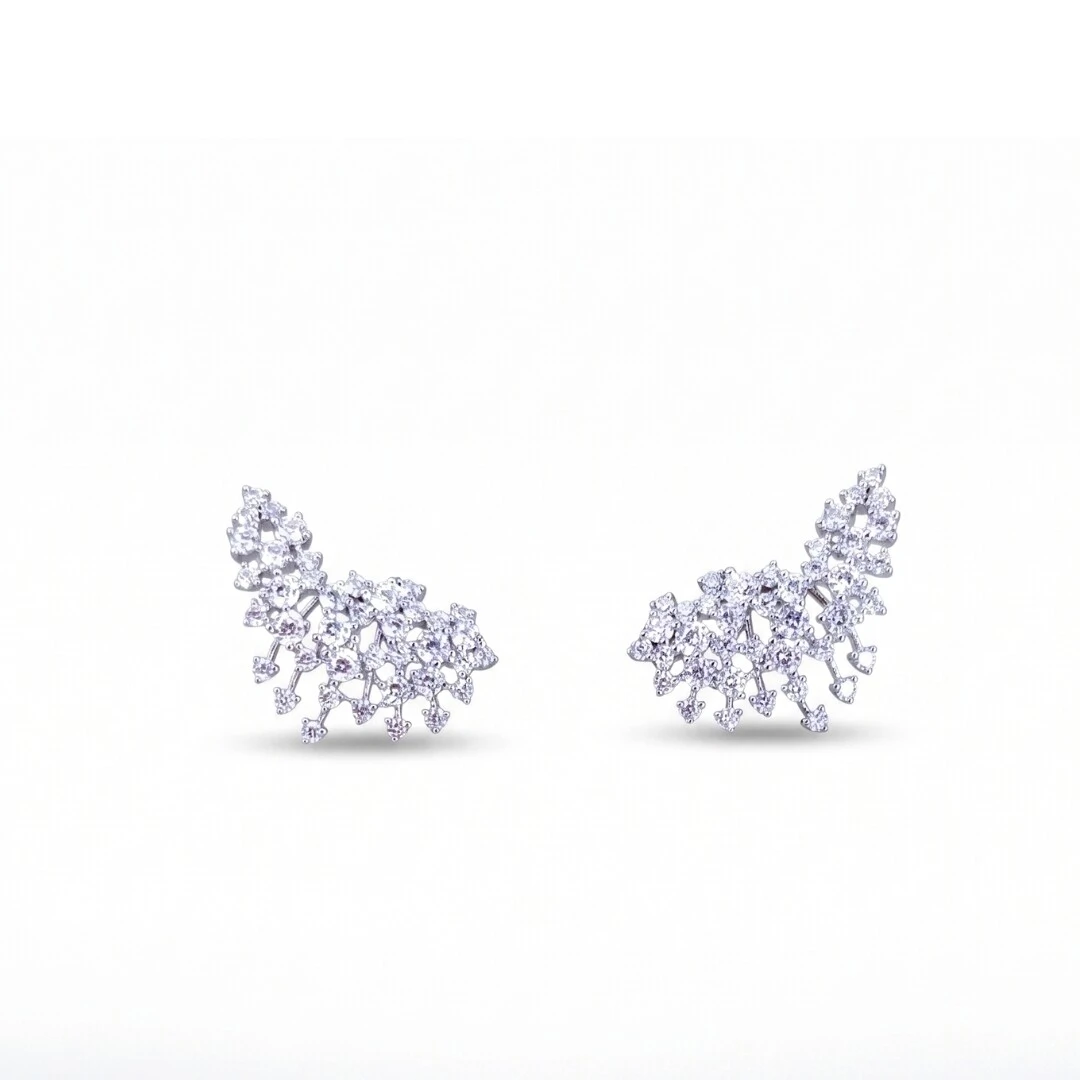 O Ear Cuff Explosion Zircônias em Ródio Branco é uma peça de impacto máximo — zircônias irradiando do centro em todas as direções criam um efeito de explosão de luz que chama atenção em qualquer ângulo.